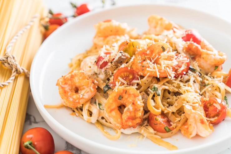 Espagueti al ajillo con camarones salteados en aceite de oliva, ajo y un toque de especias