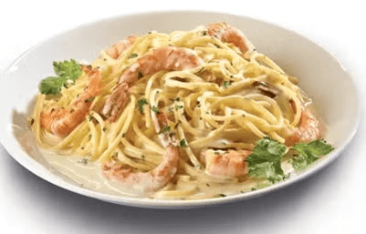 Espagueti con camarones frescos, salteados en su punto y bañados en una suave salsa de ajo y crema.